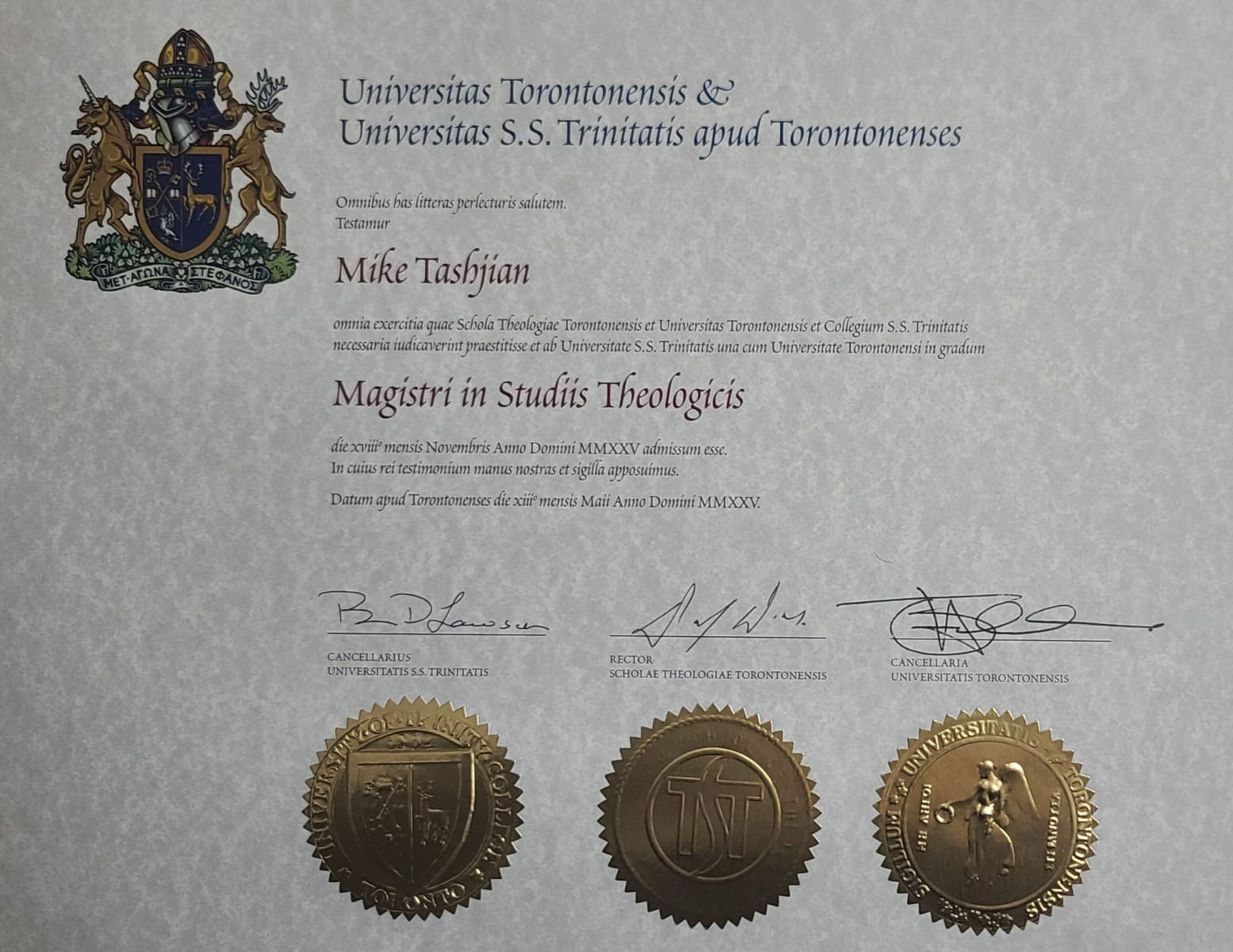 It is with absolute honour that we announce the graduation of Right Reverend Father Vartan Tashjian from the University of Toronto with a Masters in Arts in Theological Studies.